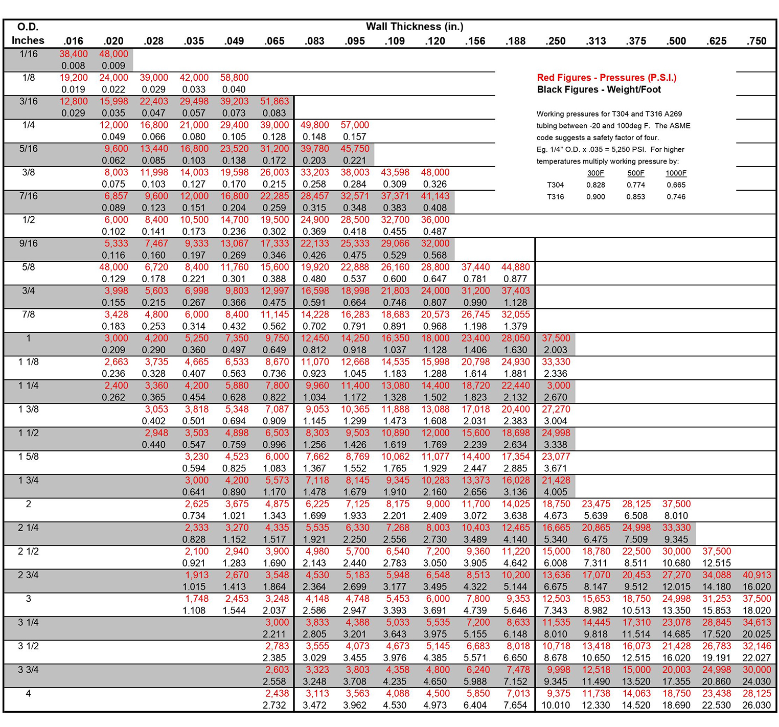 Tekanan Tubing Tubing Stainless Burst dan Bobot